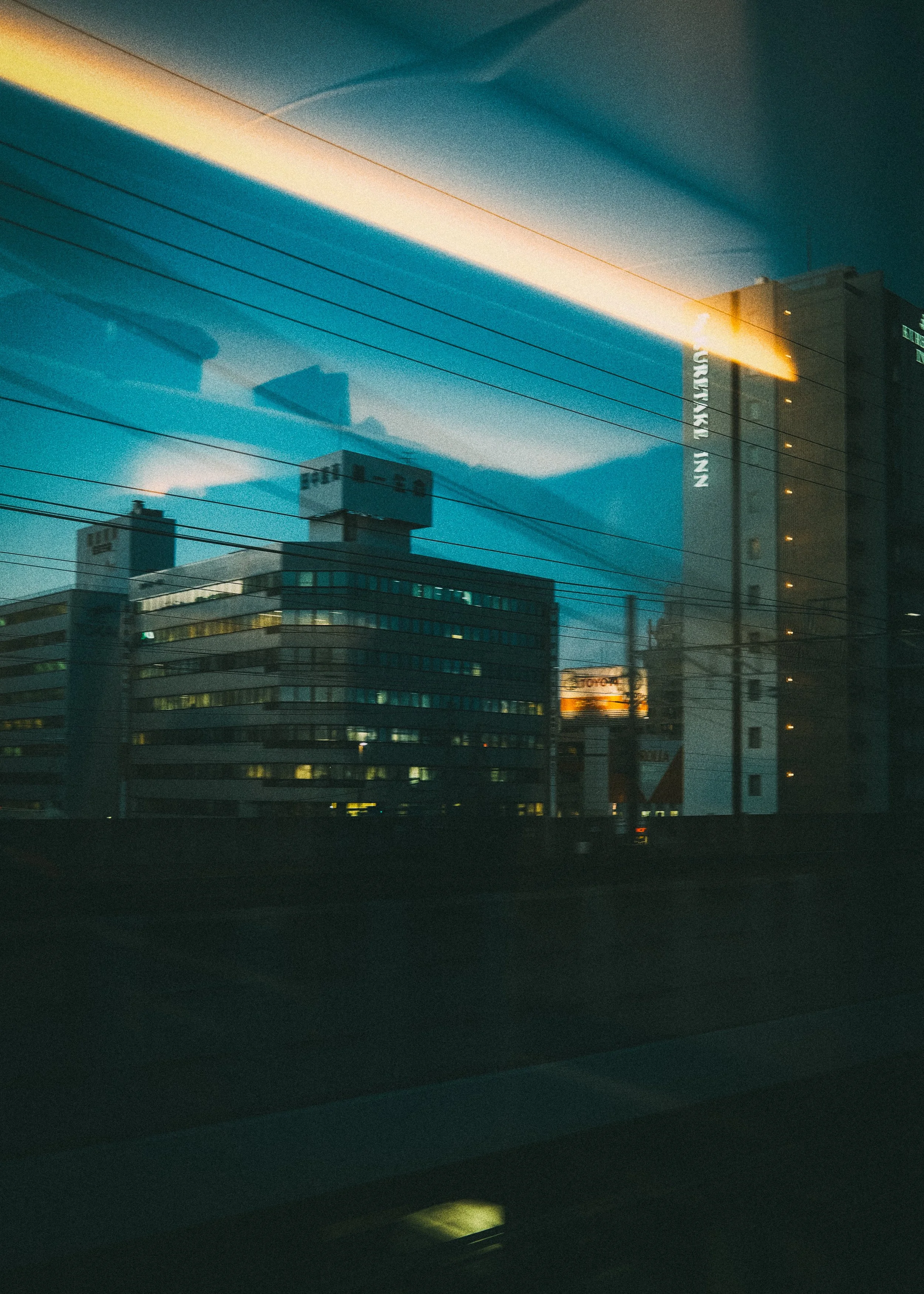 A few songs in and not expecting to see anything, I glanced out of the window. The sun had gone down, but the clear sky was on its final stage of evening glow. I figured there was still some distance to go before the train line bent to the right slightly, the spot I had in mind. But just as I was about to turn my head back, I noticed something in the distance as the train started to turn. And there it was. The snow-tipped Mt. Fuji in the distance. A grand spectacle. Magnificent in its size, but graceful. Much like a full moon. As the direction of the train favoured my view, I quickly took out my camera. Muscle memory kicked in. I adjusted the shutter speed and ISO, took the shot and lowered my camera. As I did, Beautiful (feat. Malou) pulsed through my headphones. The sheer surprise of how beautiful the view was, a view I’d dreamed of seeing and miraculously managed to pull off right at the last possible moment of the evening, along with the atmospheric song playing at the same time, filled me with adrenaline that I find extremely difficult to describe. The perfect day in Kyoto, now this. It felt cinematic.